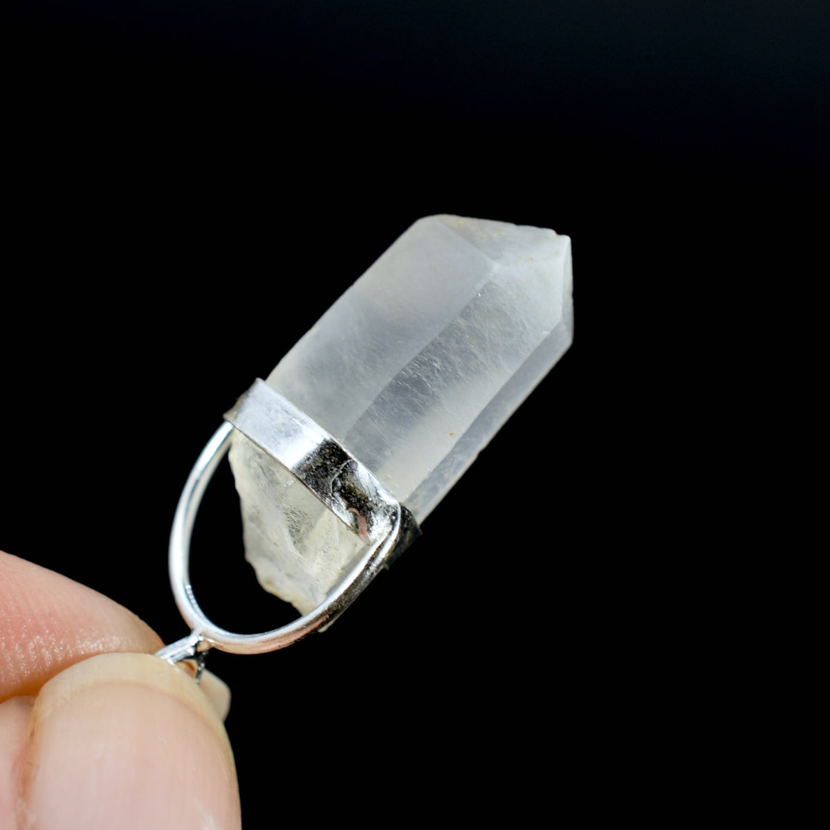 1.5in Cosmic Lemurian Seed Quartz Crystal Laser Pendant for Necklace, Sterling Silver, Brazil J10