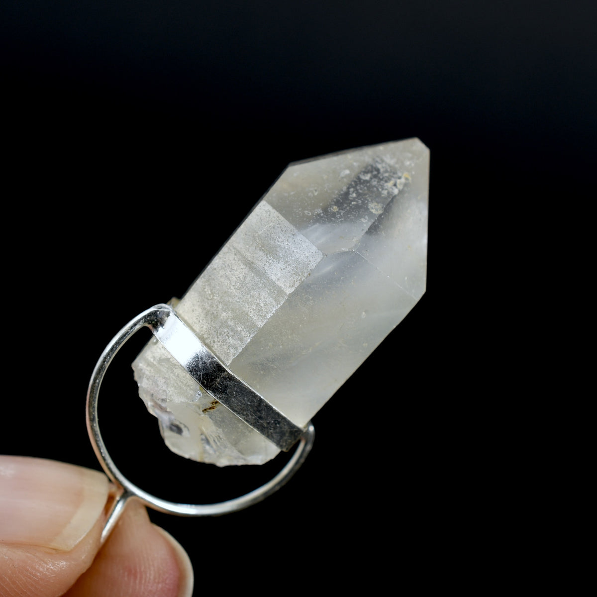 1.5in Cosmic Lemurian Seed Quartz Crystal Laser Pendant for Necklace, Sterling Silver, Brazil J10