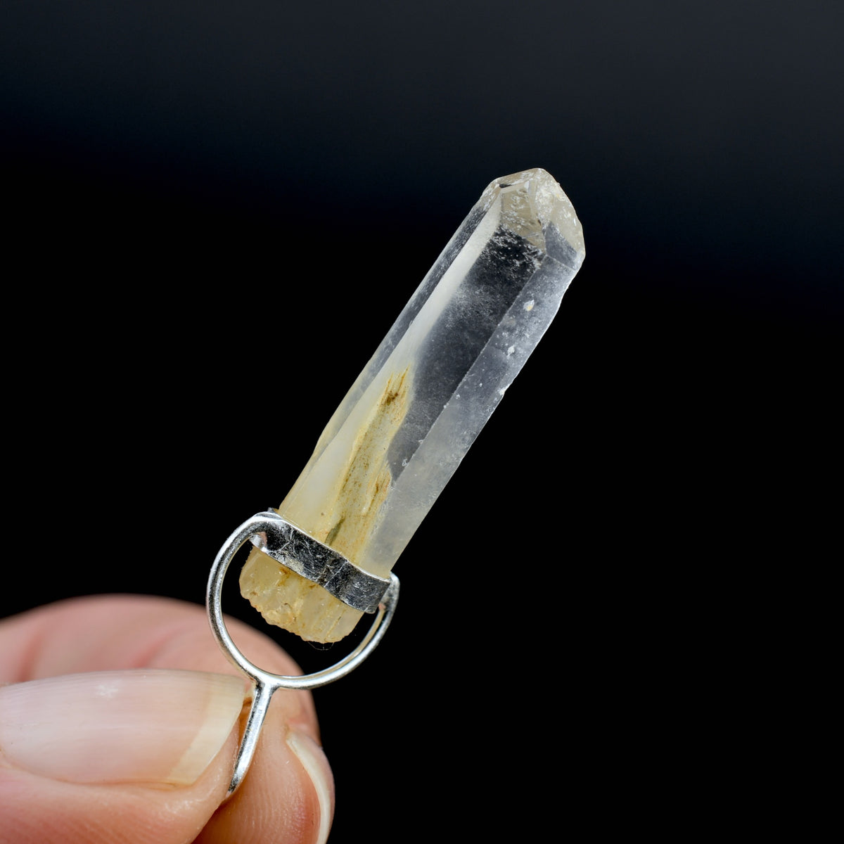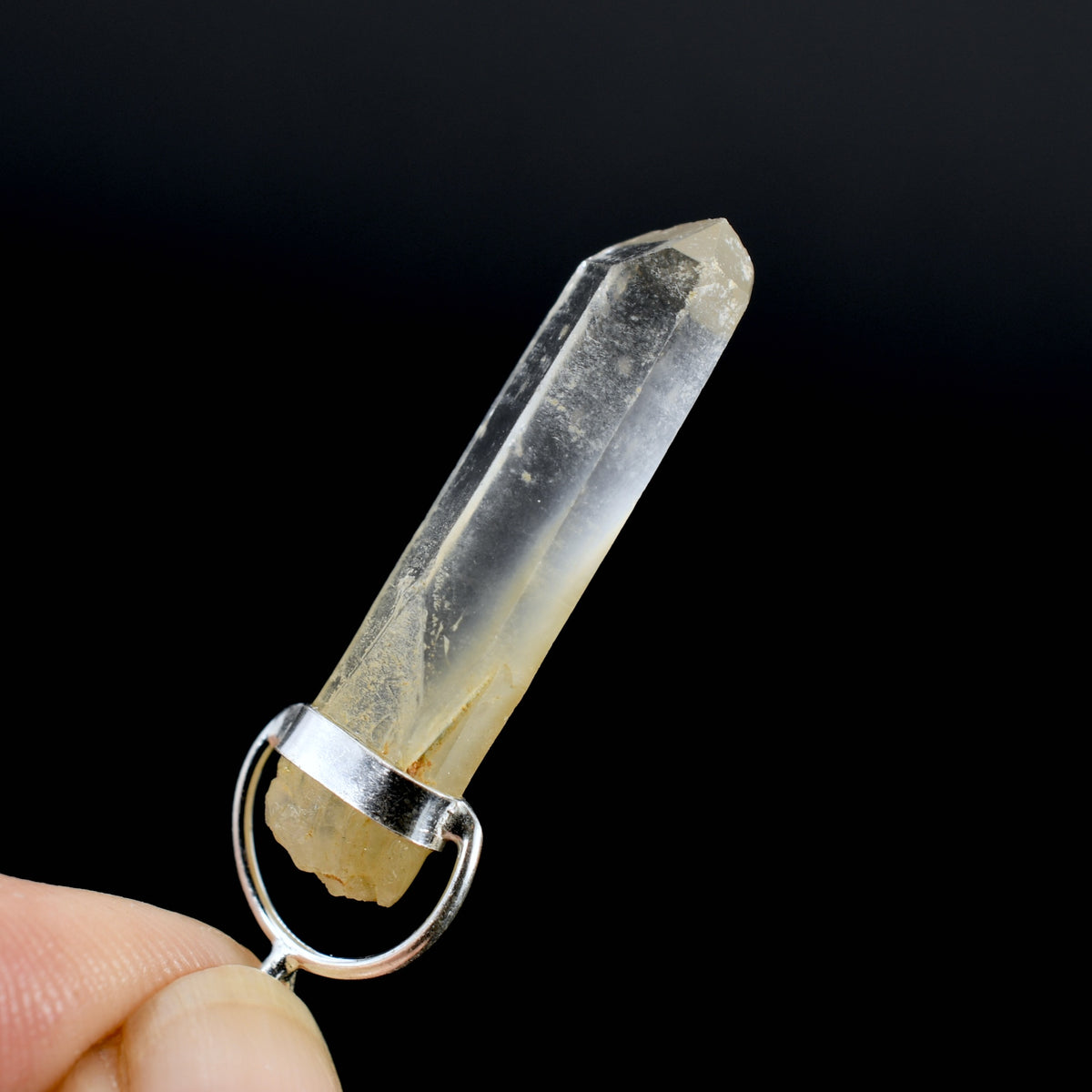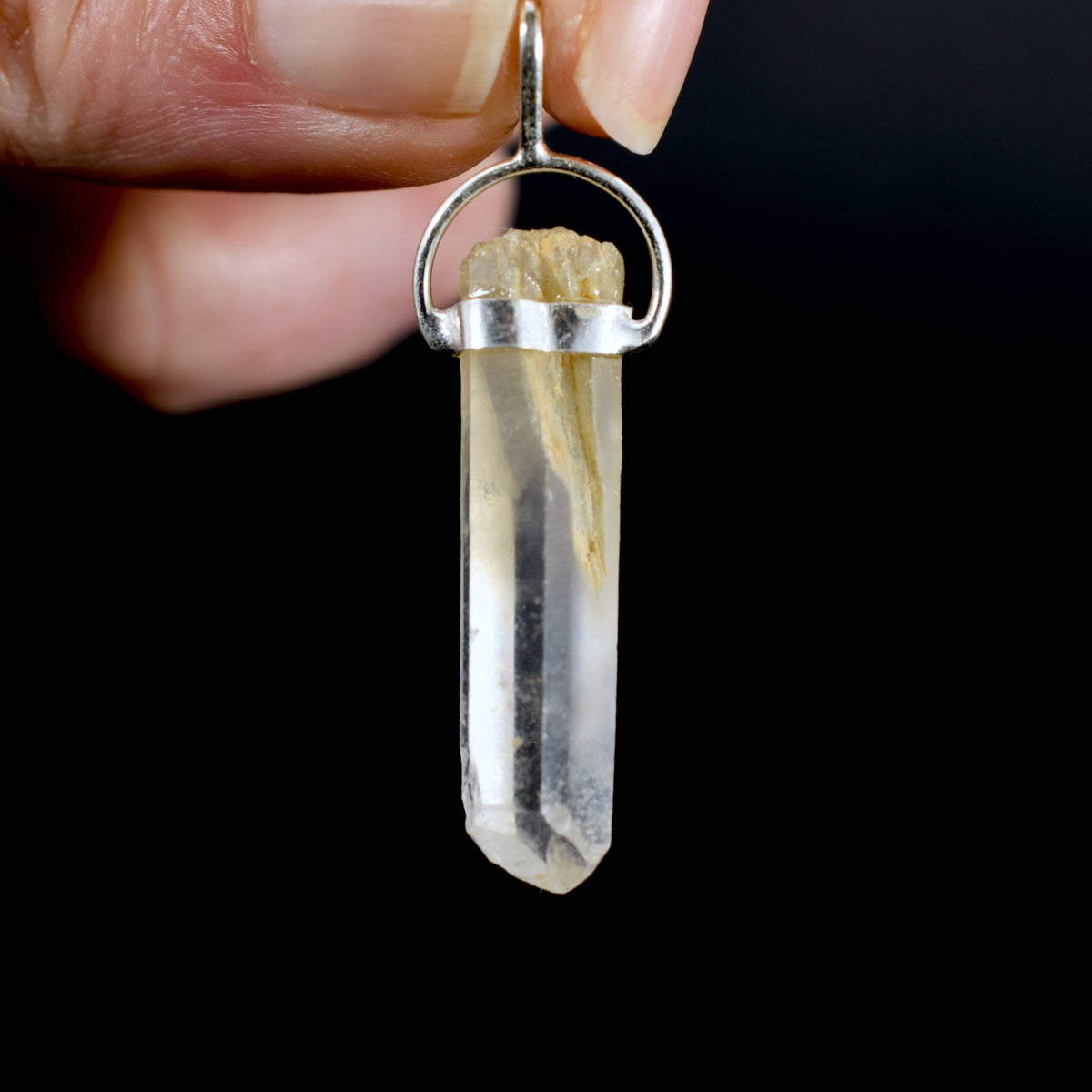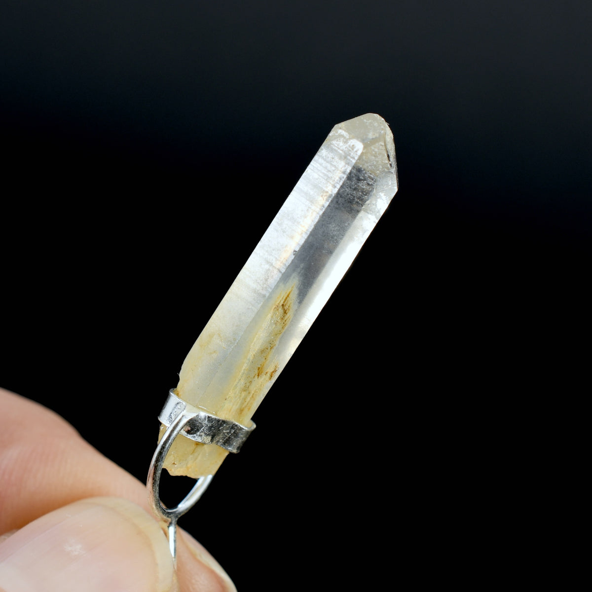 1.5in Cosmic Lemurian Seed Quartz Crystal Laser Pendant for Necklace, Sterling Silver, Brazil J10