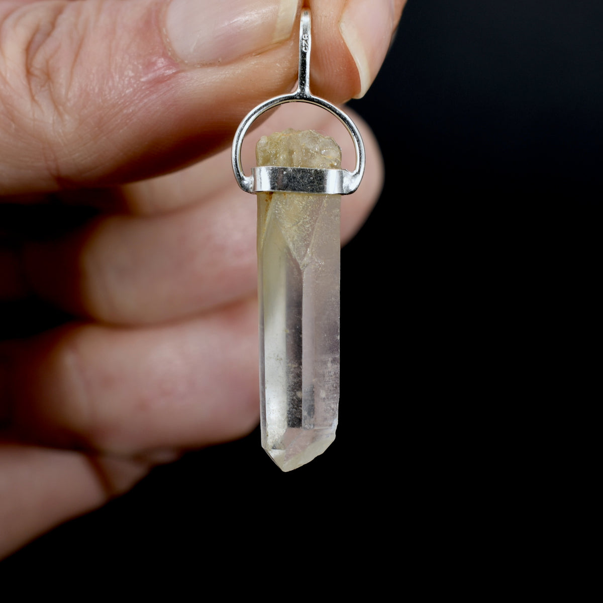 1.7in Cosmic Teacher Student Lemurian Seed Quartz Crystal Laser Pendant for Necklace, Sterling Silver, Brazil J11