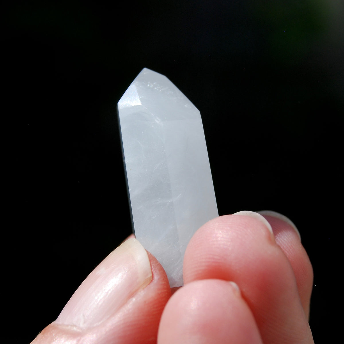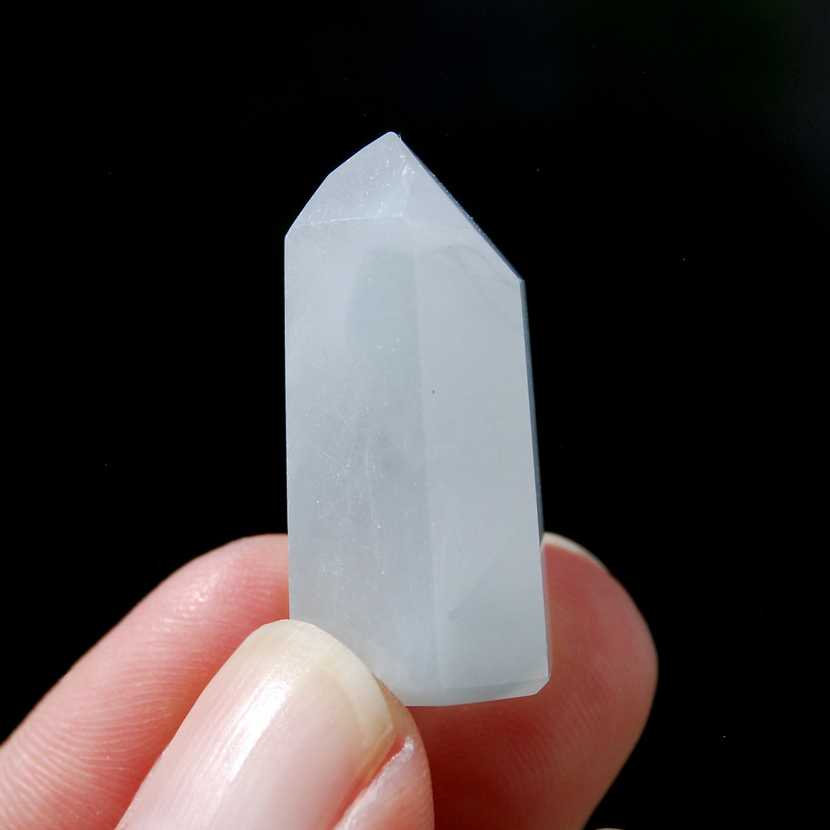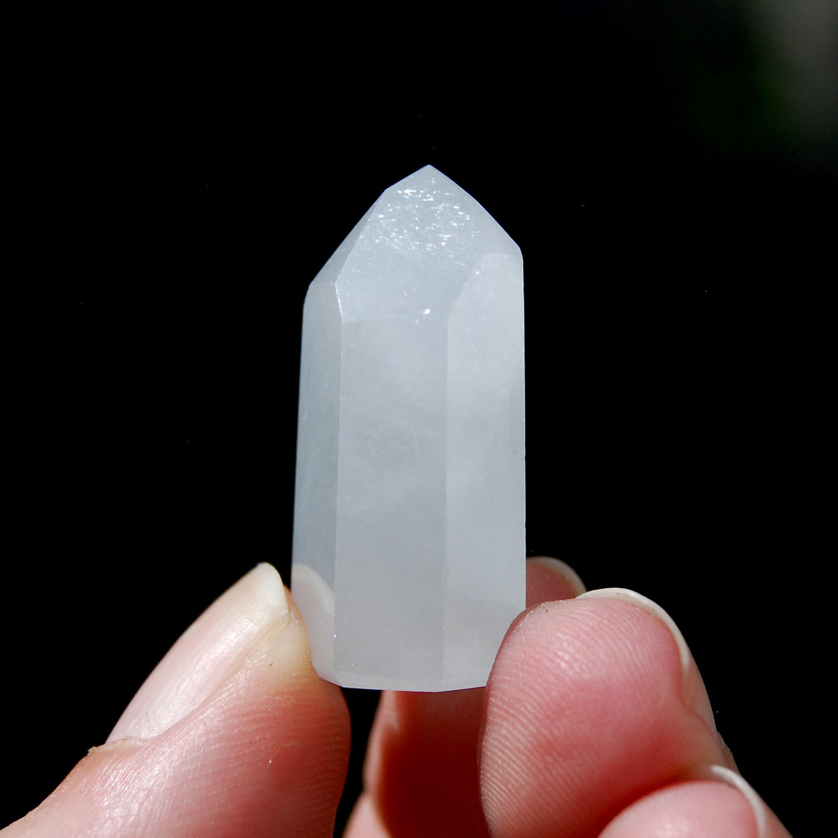 Unit price / perFor your consideration is this beautiful and super rare blue Amphibole quartz tower from Minas Gerais, Brazil. The pale blue Amphibole crystal pictured is the one you will receive. It is finely carved and has a beveled edge base. It is in the shape of a Transmitter, weighs 10 grams and measures approximately 1.2 inches tall.