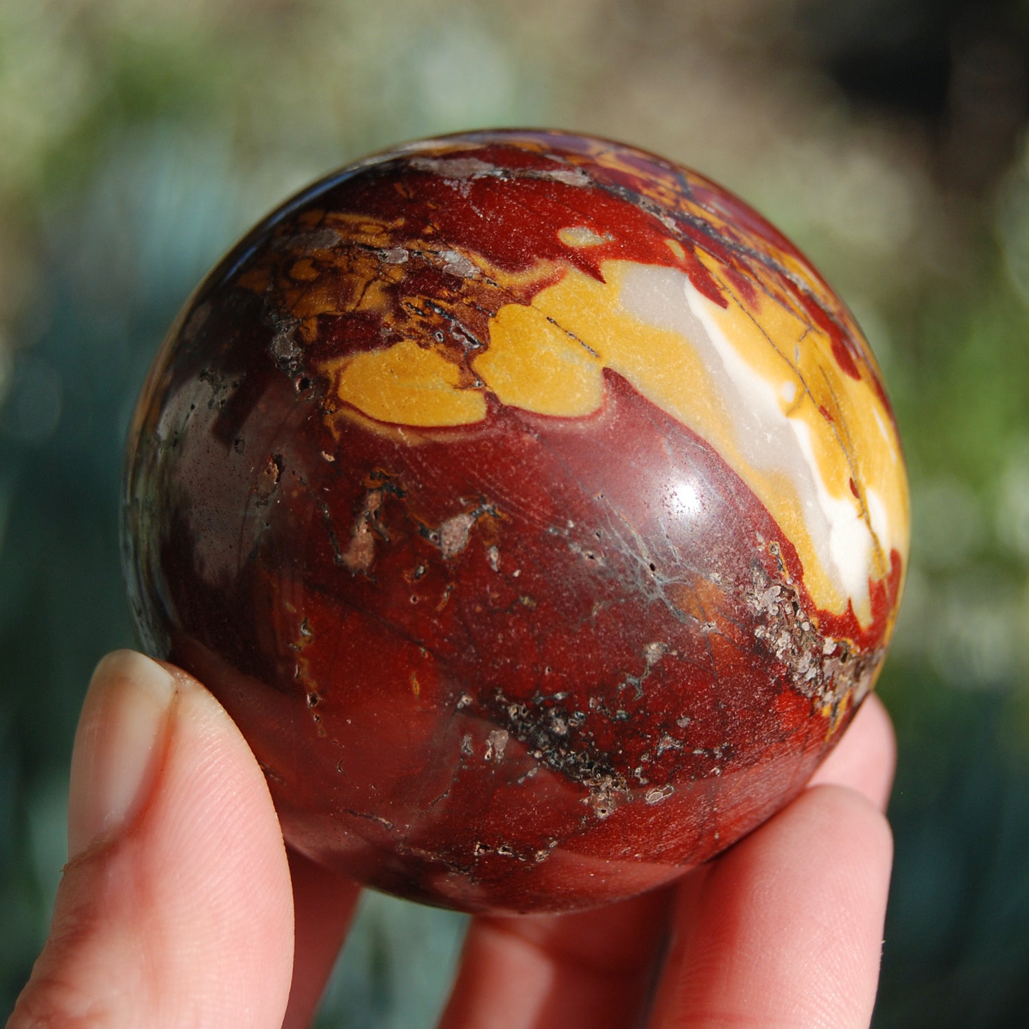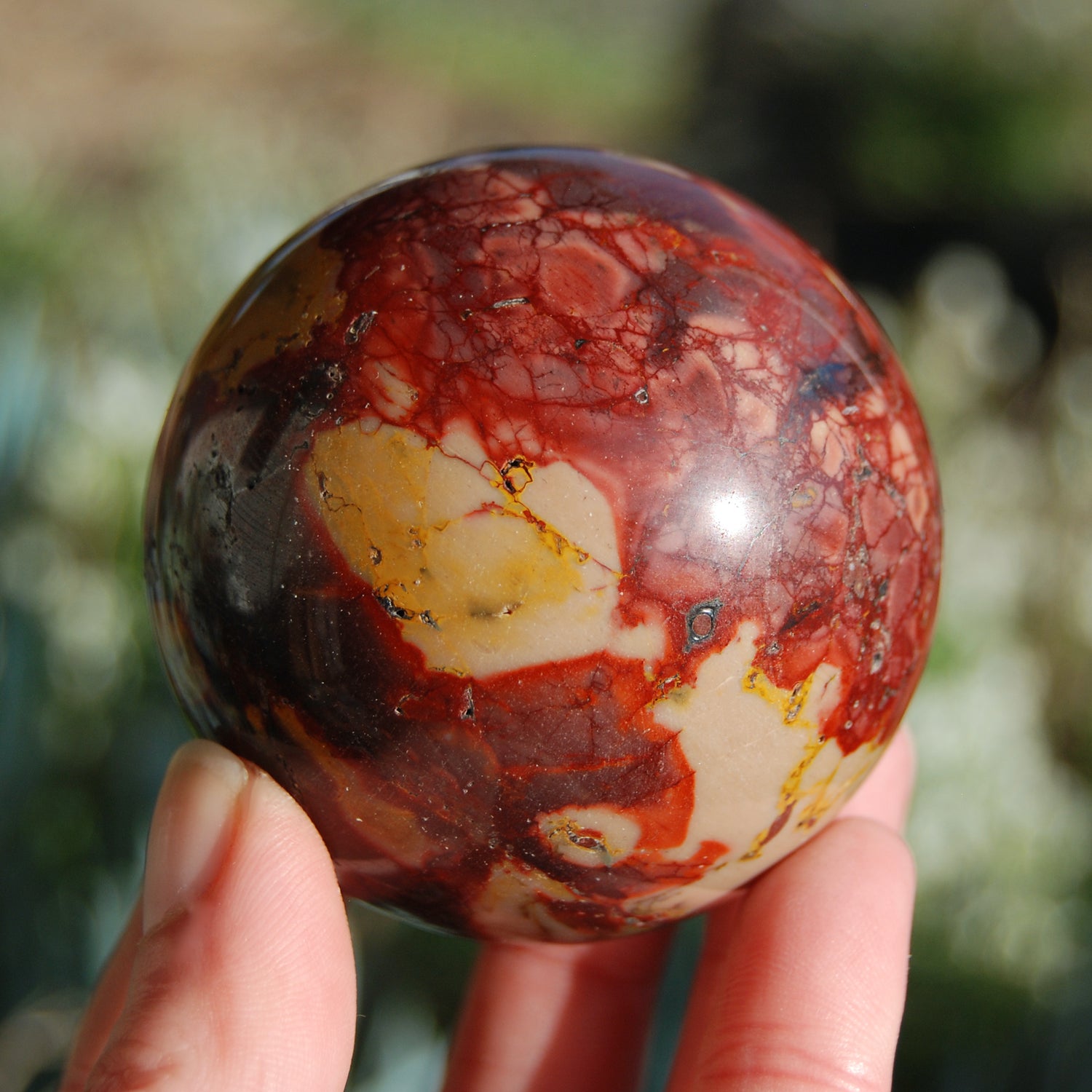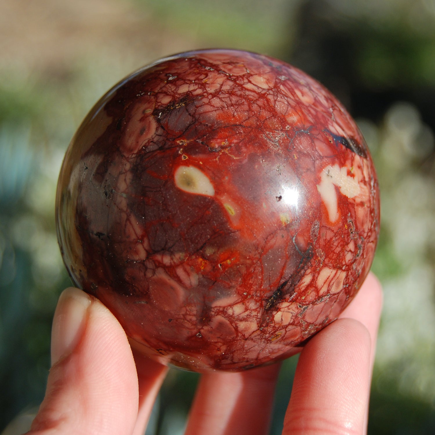 The Ibis jasper sphere pictured is the one you will receive. It measures 3 inches in diameter and weighs 624 grams (1.4 pounds).