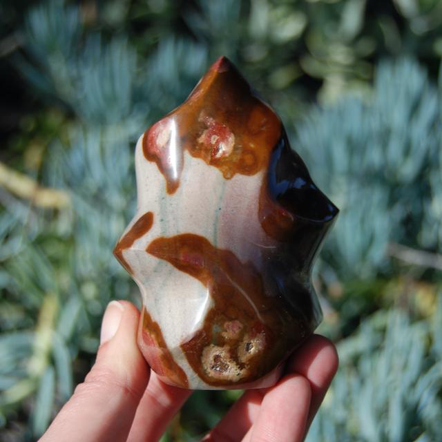 For your consideration is this beautiful Maligano Jasper freeform tower from Indonesia. It is self standing. This one weighs 199 grams and measures approximately 2.75 inches tall.