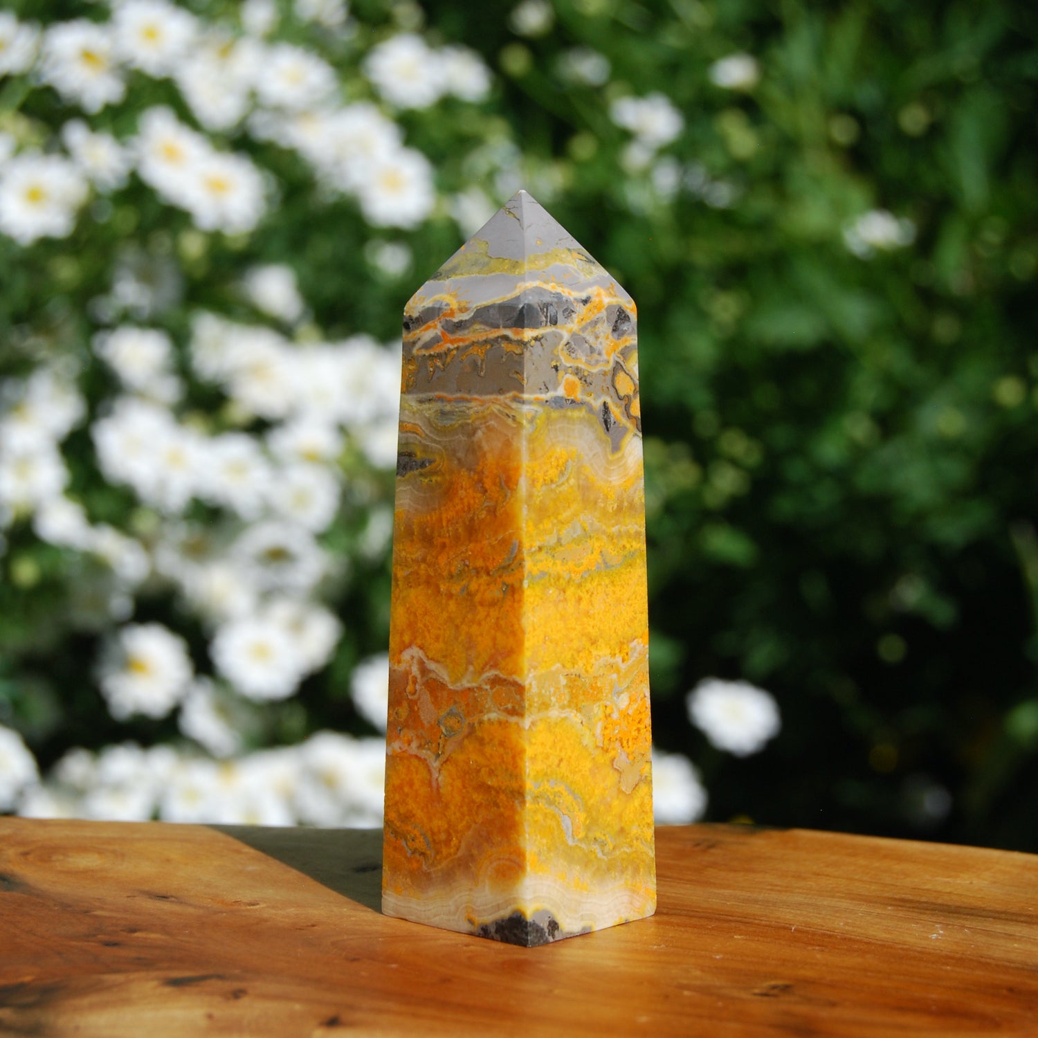 Bumble Bee Jasper promotes joy, self esteem and a positive outlook on life. It encourages one to manifest their dreams and creates new opportunities by removing emotional and ancestral energy blockages. Aids in making logical decisions and acceptance of change. Boosts creativity and inspiration.