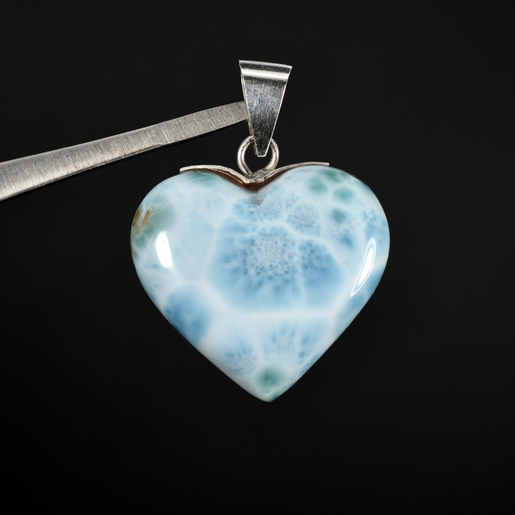 47ct 1.4in Genuine Larimar Heart Pendant for Necklace, Sterling Silver, Dominican Republic e13