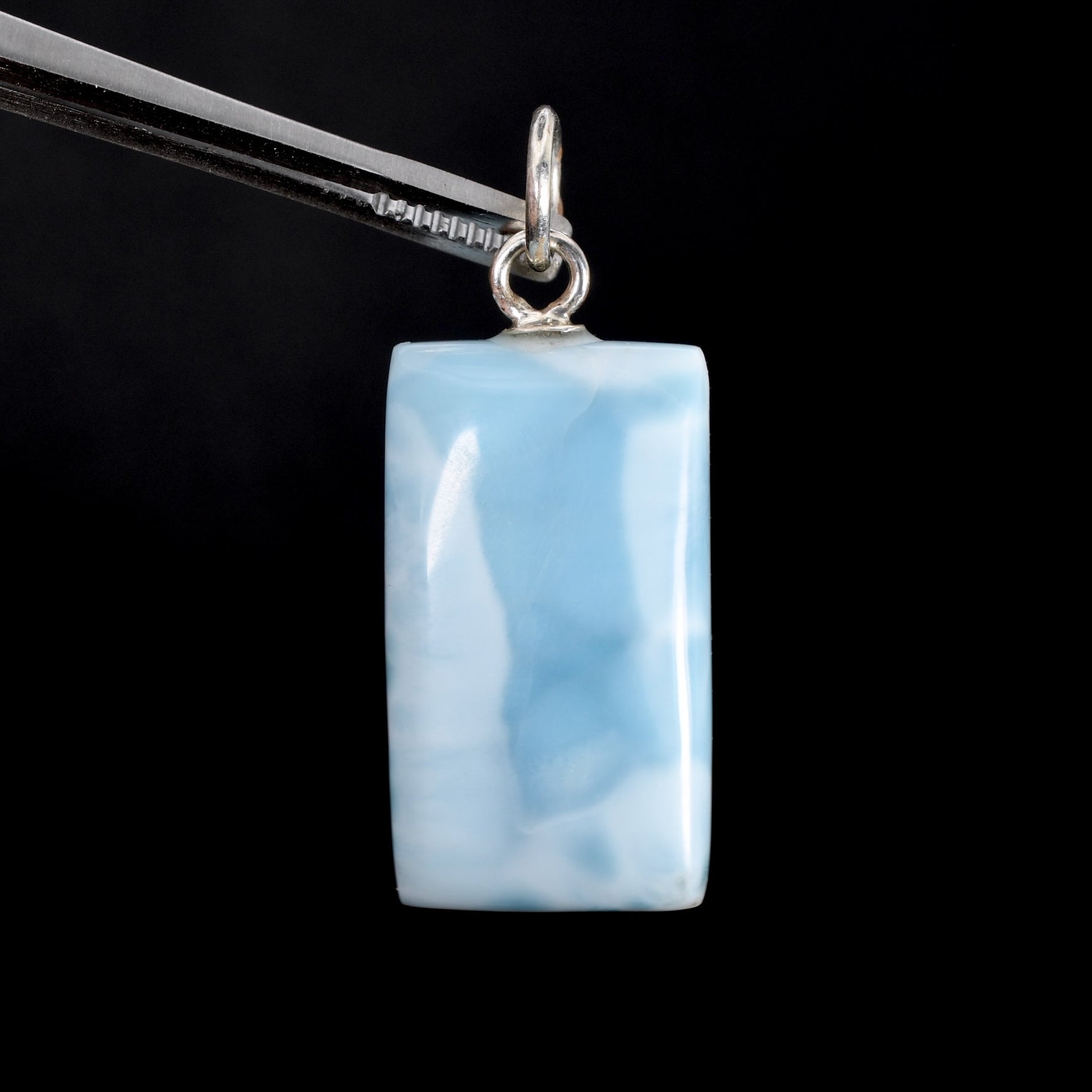 60ct 1.7in Genuine Larimar Rectangle Pendant for Necklace, Sterling Silver, Dominican Republic j31