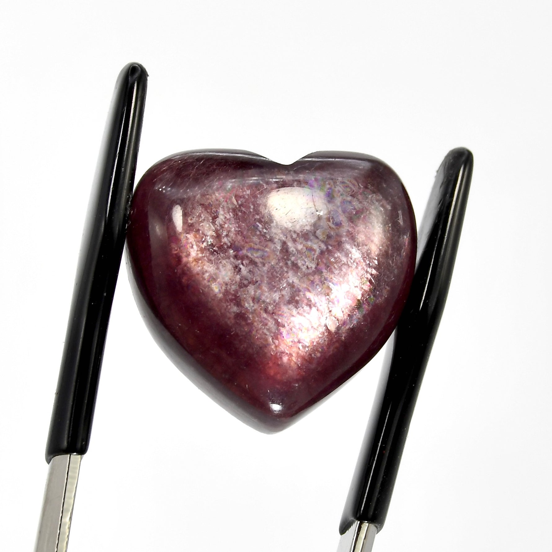 Unit price / perFor your consideration are these top quality, silver leaf gem lepidolite crystal heart cabochons from Madagascar. They all have intense silver flash with tiny internal rainbows with super gemmy transparency. These gem lepidolite crystal heart cabochons measure approximately 15-17mm and are 6-7mm thick. They have flat backs and rounded sculpted faces.
