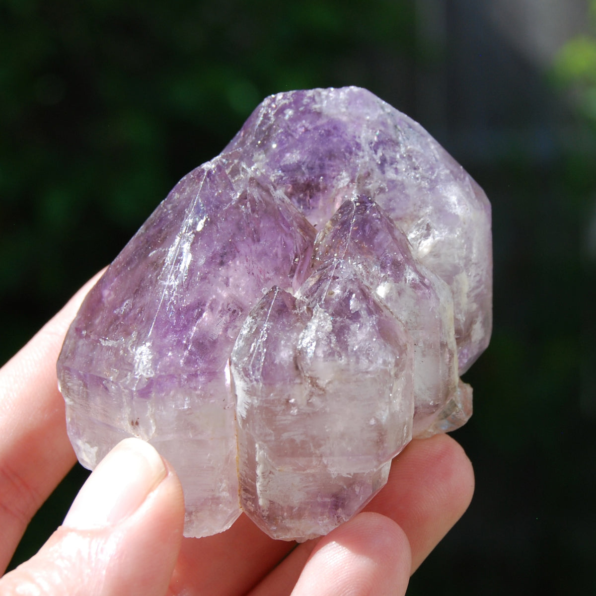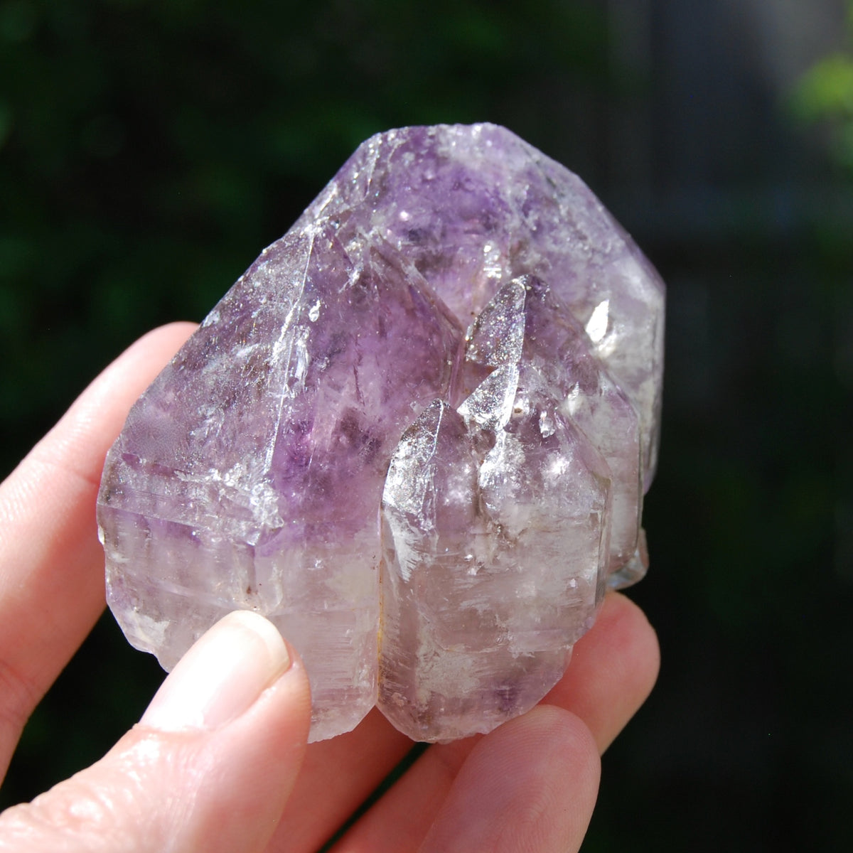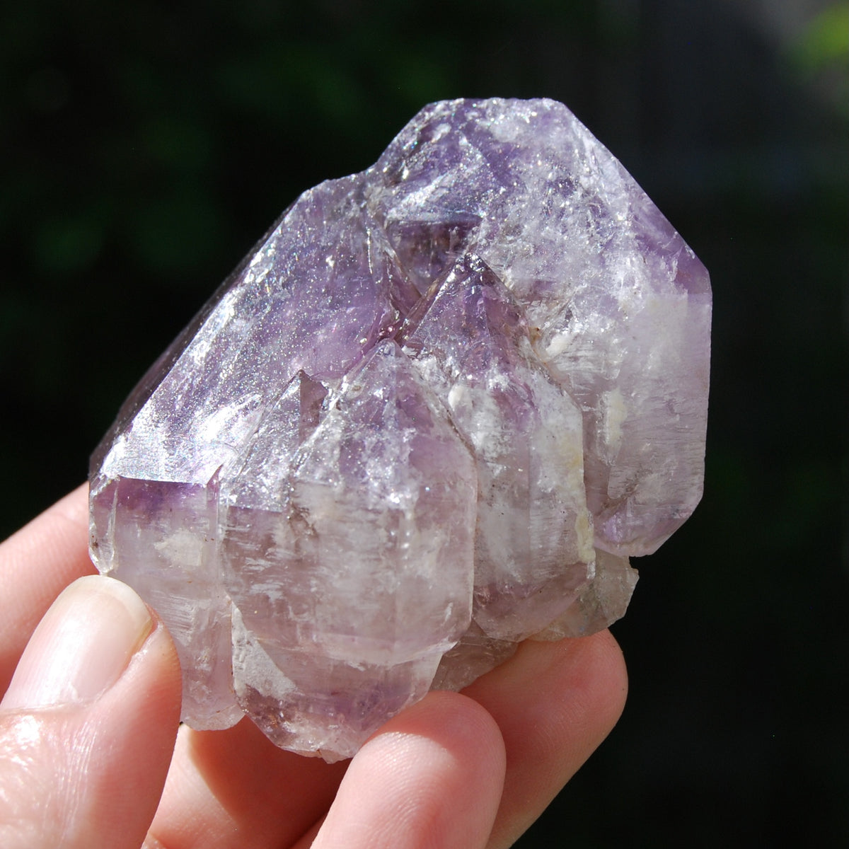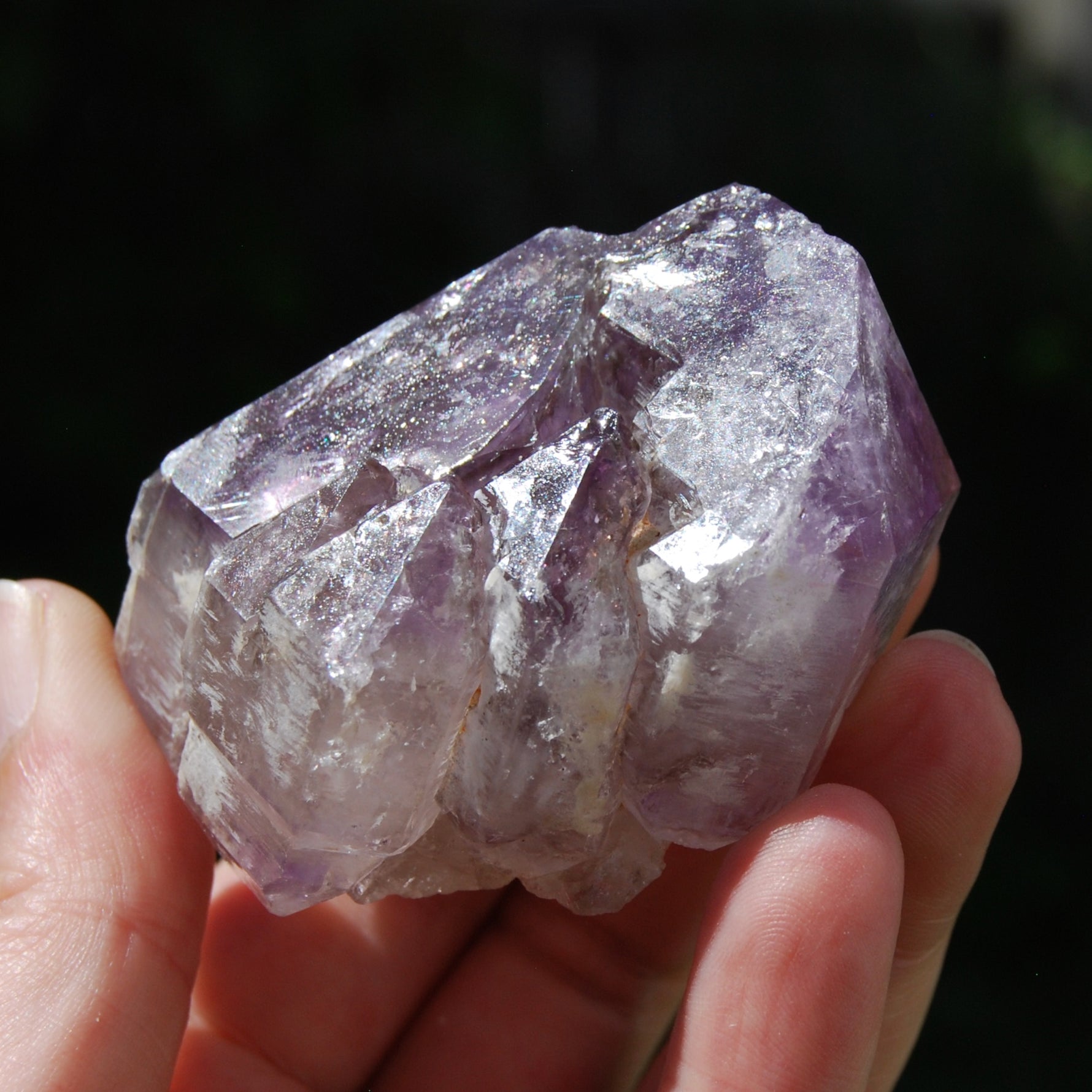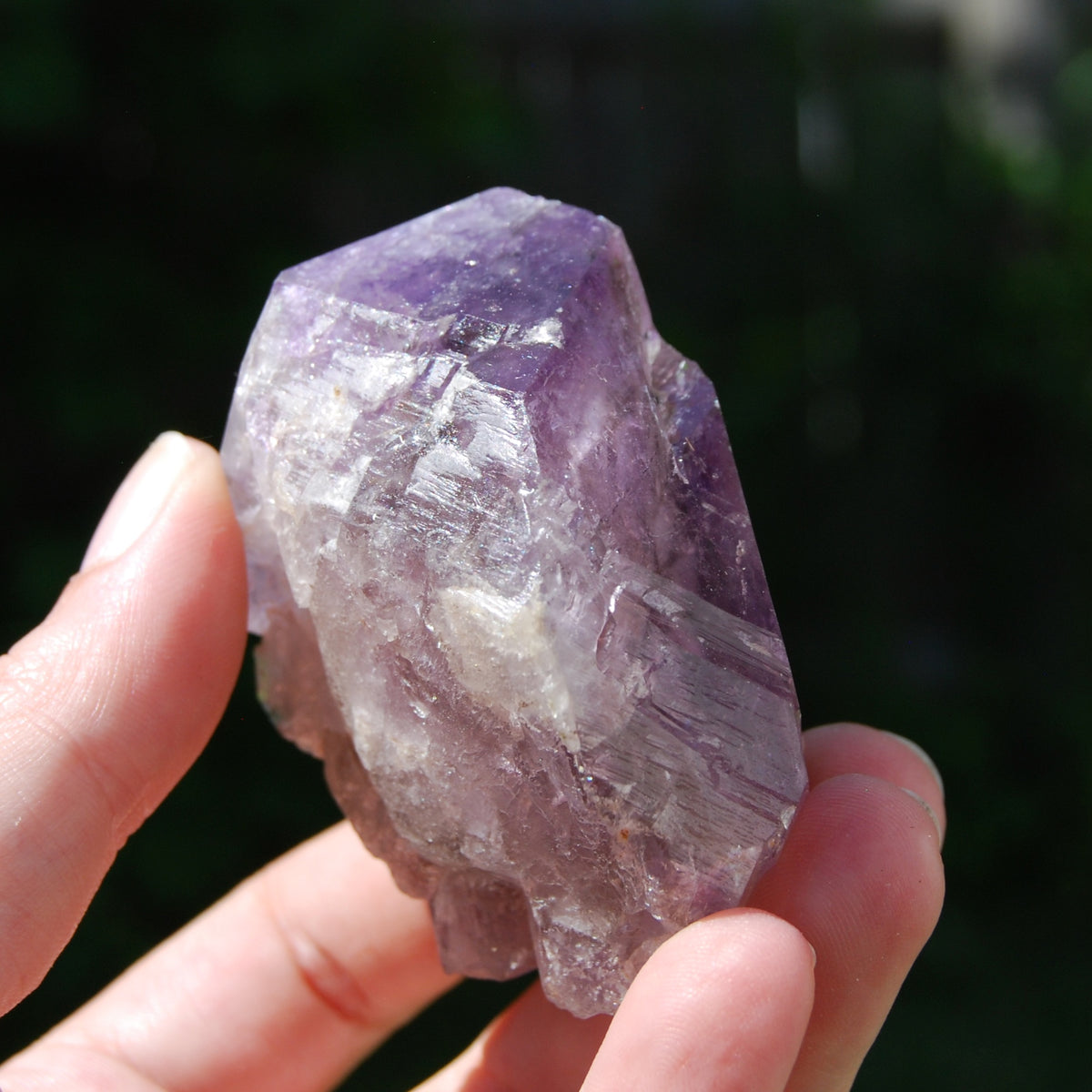 For your consideration is this gorgeous elestial Amethyst quartz crystal from Mali. These amethyst quartz crystals have windows similar to Fenster quartz and are full of internal rainbows and color zoning.