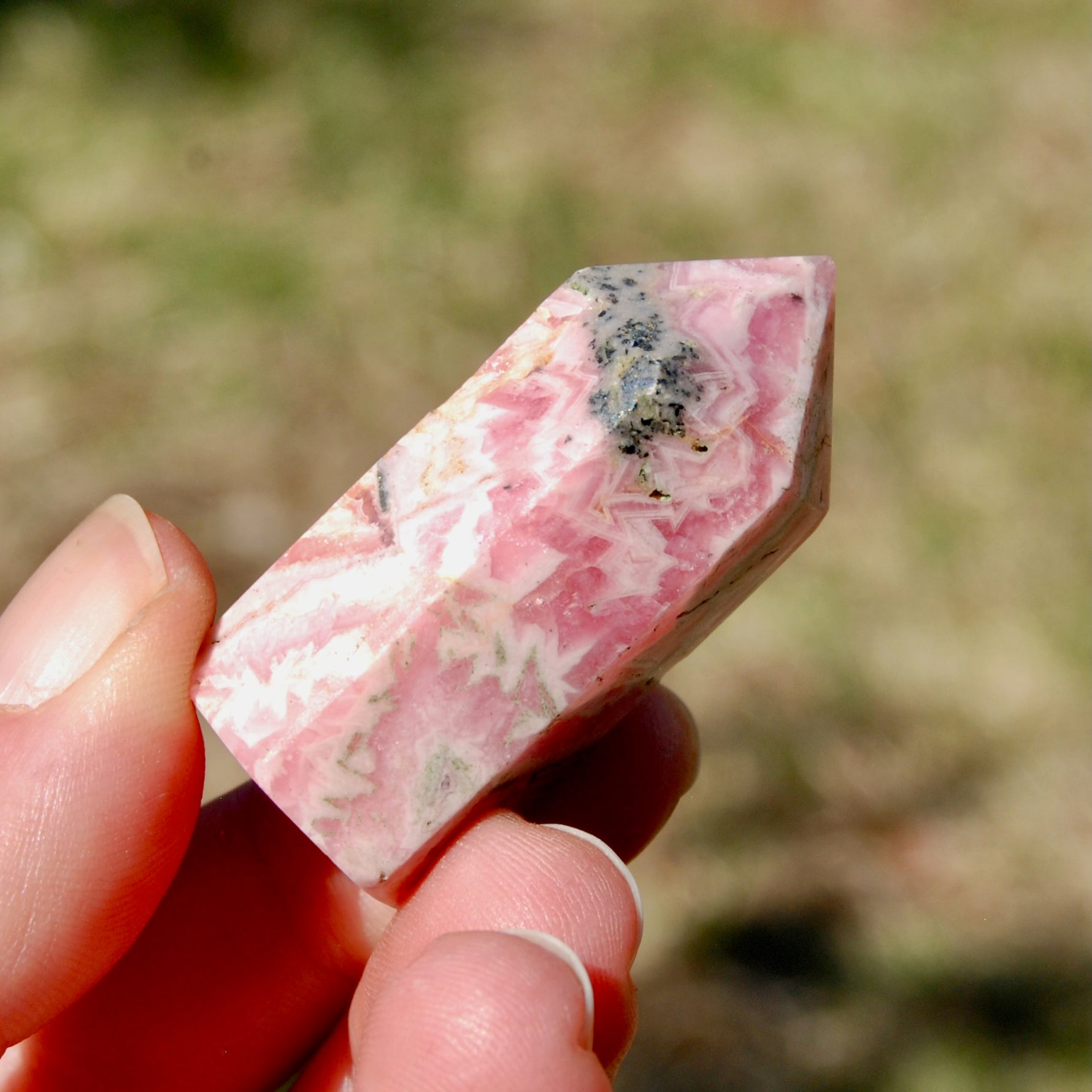 1.75in 39g Genuine Rhodochrosite Pyrite Gemstone Tower, Healing Crystals Lucky Love Manifestation, Argentina