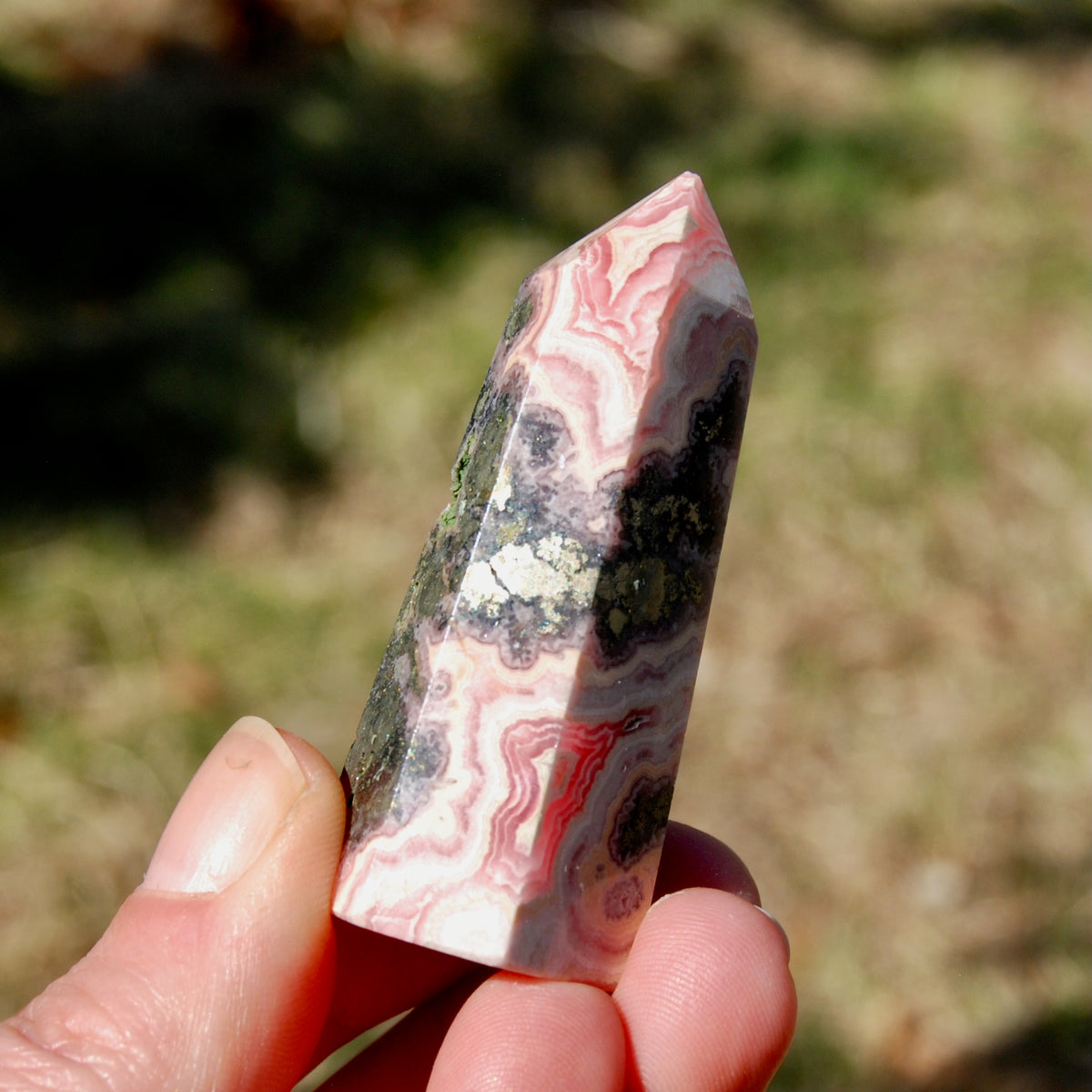 2.5in 63g Genuine Rhodochrosite Pyrite Gemstone Tower, Healing Crystals Lucky Love Manifestation, Argentina