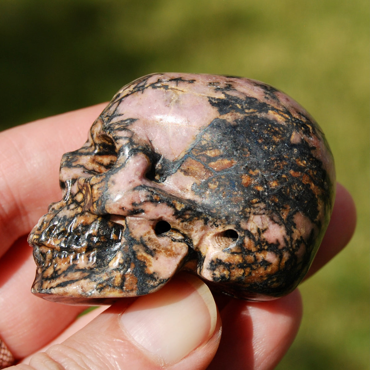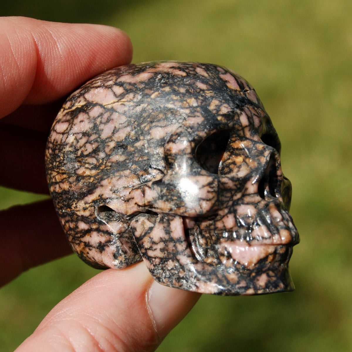 2" Pink Rhodonite Carved Crystal Skull