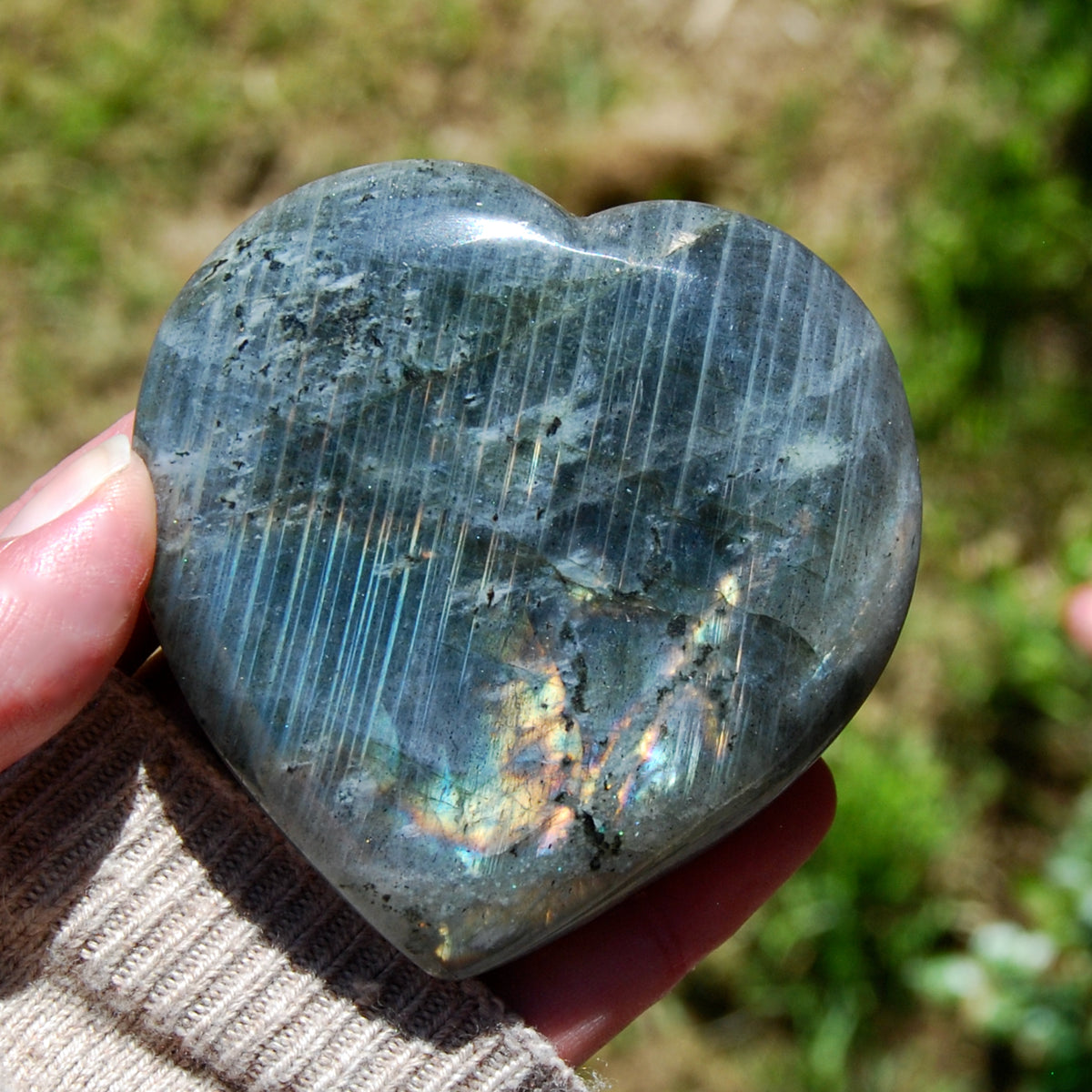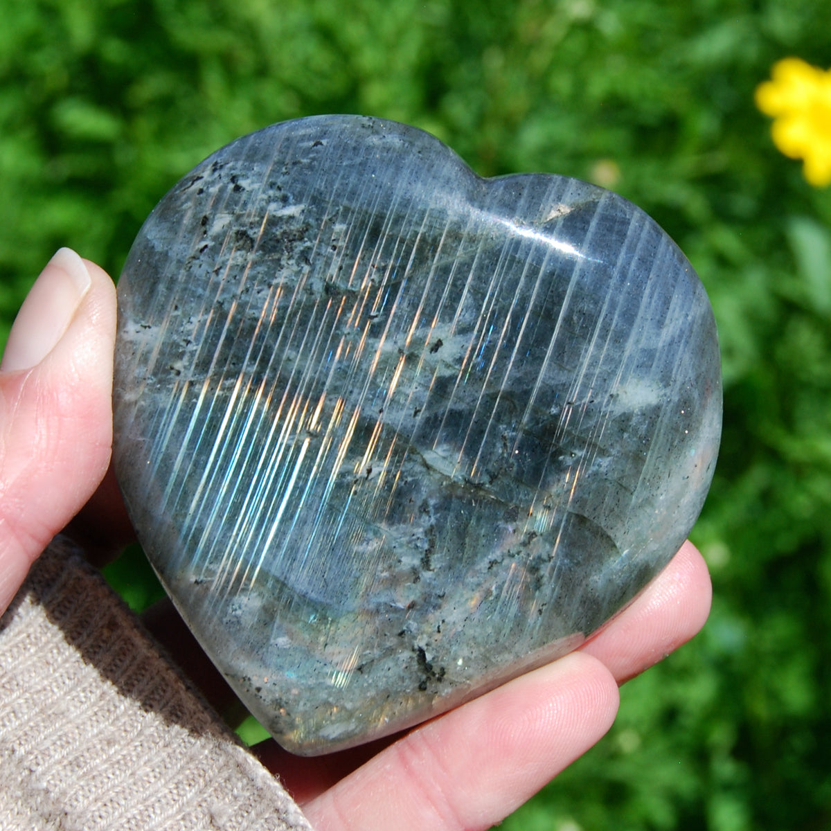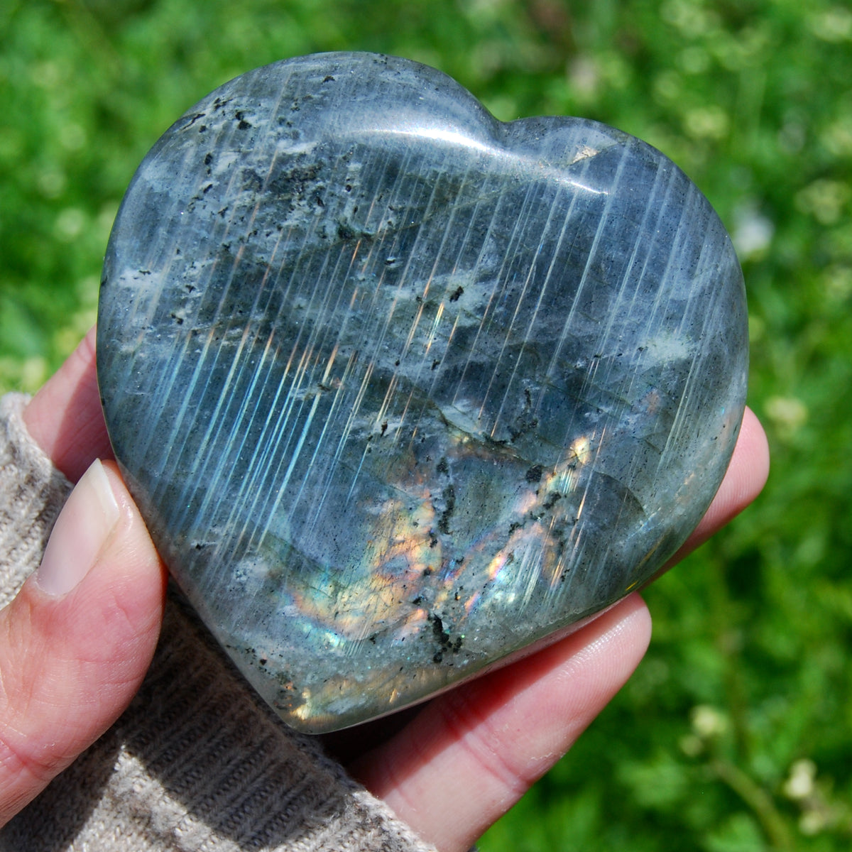 Unit price / perFor your consideration is this large, super flashy, Labradorite heart shaped crystal palm stone. It measures approximately 3 inches tall and weighs 208 grams. The one pictured is the one you will receive. This one has a lot of areas of rare purple, lavender and pink.